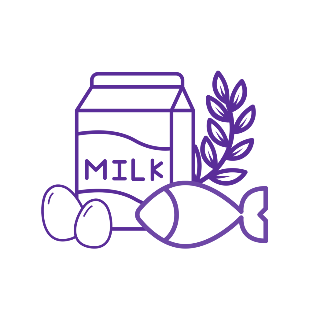 milk/casein, eggs, fish, shellfish, tree nuts,